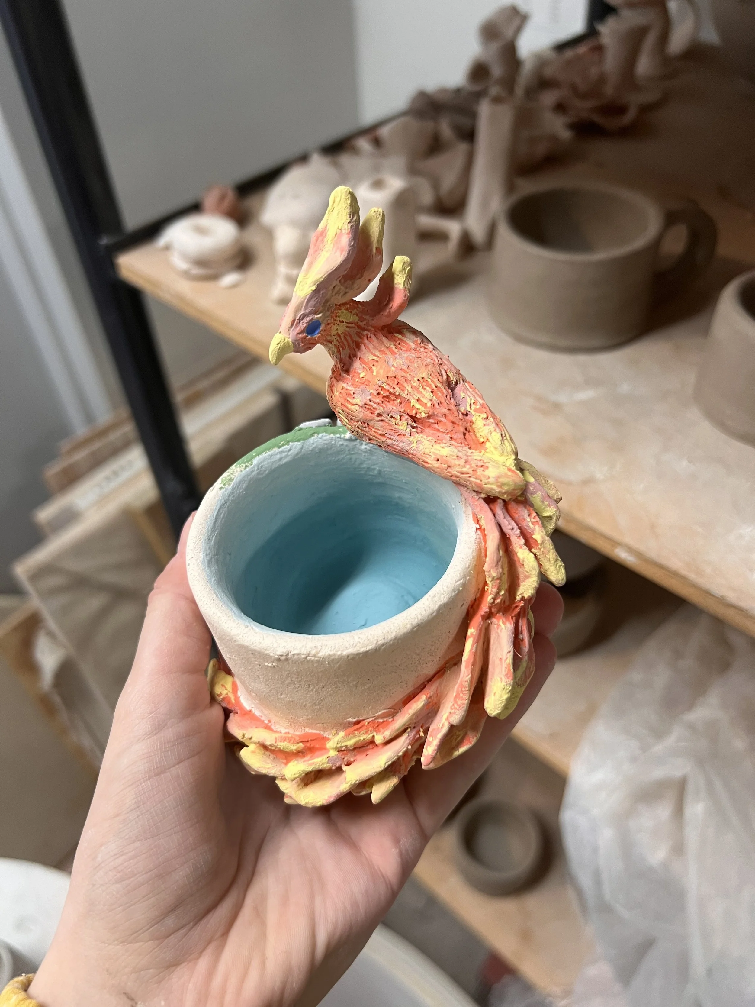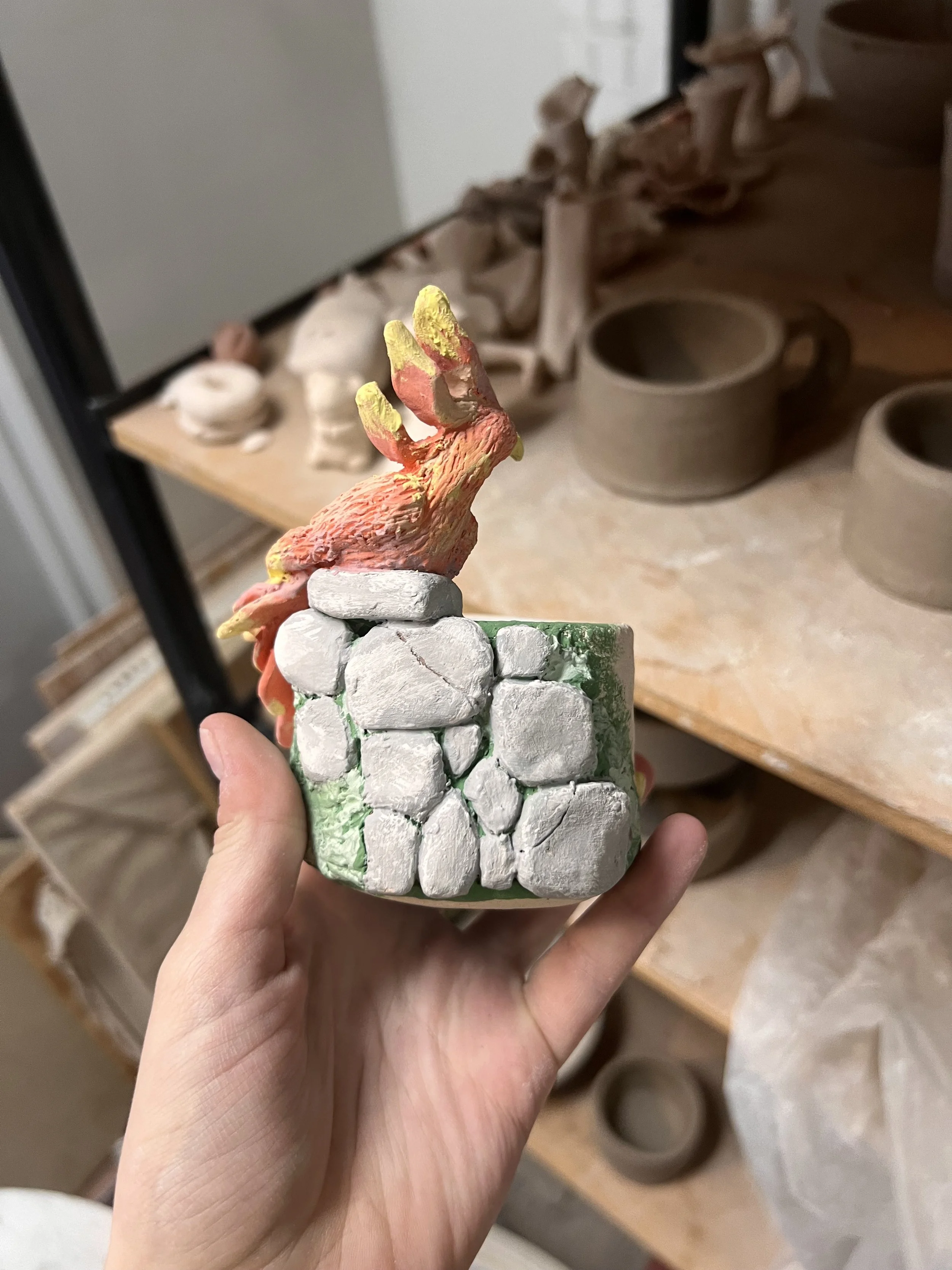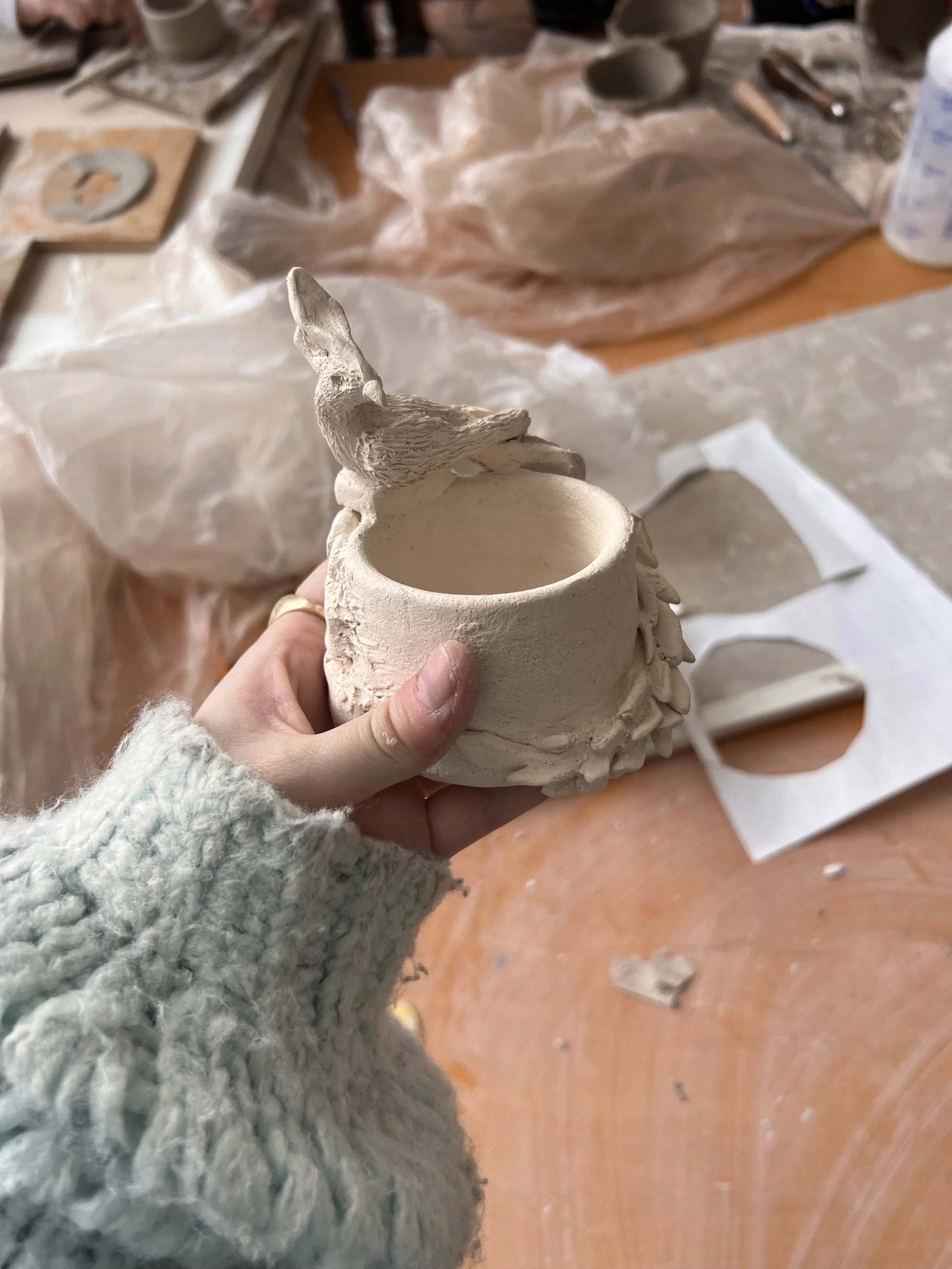 i’ve taken a couple art courses throughout the years where i’ve been able to do ceramics; these are all from a course i took my junior year of highschool. most of them are of a wheel-thrown mug i sculpted on :)